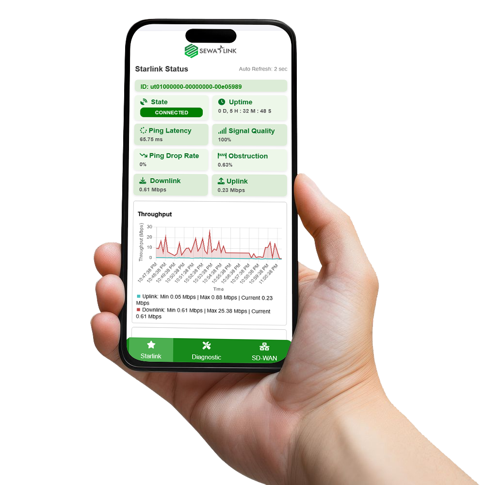 Dengan Smart Node+, Anda dapat memantau, menganalisis, dan mengelola koneksi Starlink secara real-time. Mulai dari melihat data telemetry, menguji kecepatan, hingga kontrol SD-WAN, semua tersedia dalam satu genggaman.